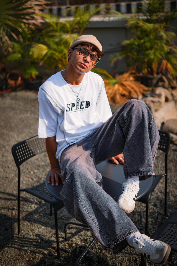 Minimal graphics meet everyday street comfort. The DEAZY Speed Graphic Oversized Tee features a clean white base with bold front typography, designed with a relaxed oversized fit for effortless streetwear styling.